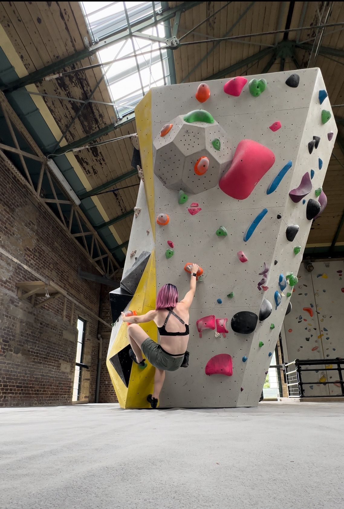 I first went bouldering at a north London climbing centre in summer 2022, in order to try and impress someone I was dating at the time. We joined a friendly group of people who visited weekly and climbed together, and I initially suffered through it because they were very lovely and it was nice to be in a community. I was very scared of going up walls though and I was kinda weak and had little noodle arms though, but it didn’t stop me. I had to take a break for three months as I had bottom sur